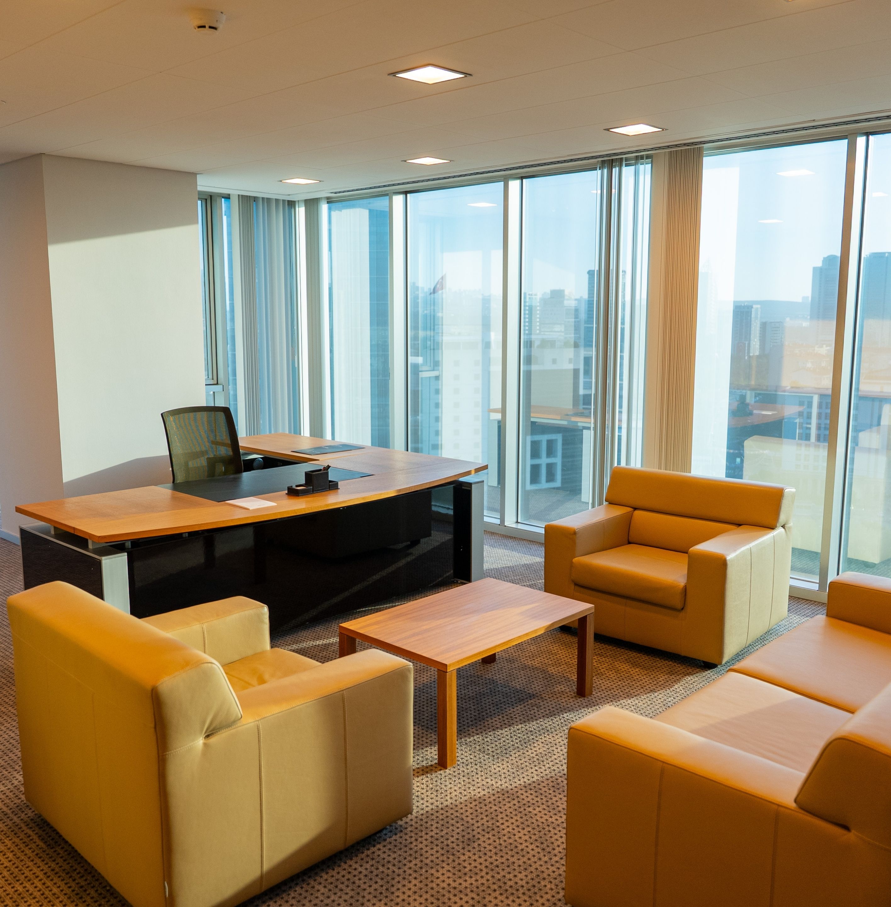 Ankara manzaralı, şık dekorasyonlu ve fonksiyonel ofis tasarımı -